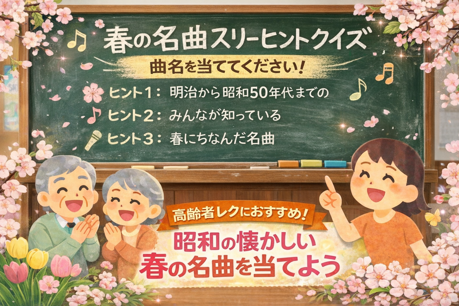 ​【デイサービス】高齢者が喜ぶ「春の名曲スリーヒントクイズ」10選!レク台本にそのまま使える解説付き