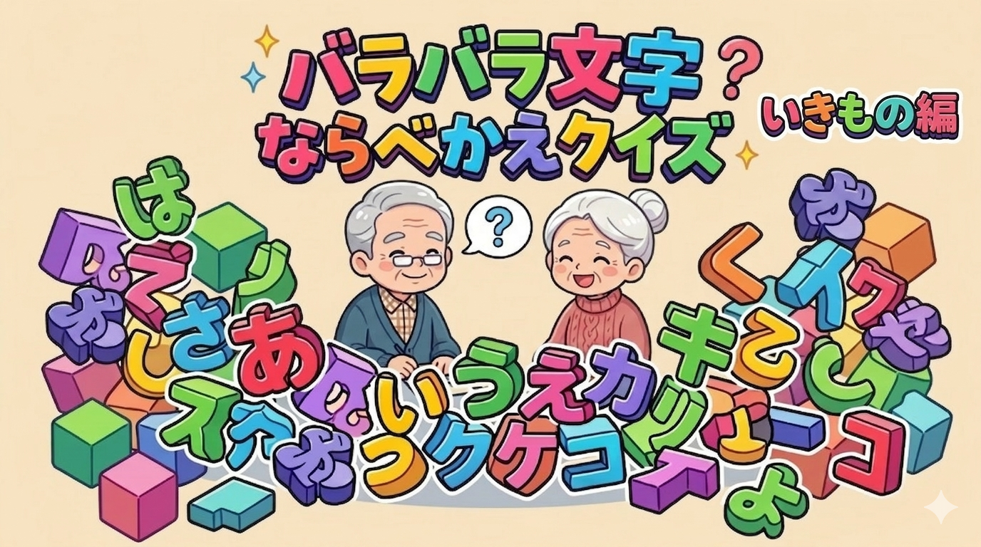 デイサービスで盛り上がる高齢者レク「バラバラ文字並べ替えクイズ」のいきもの編Part3を10問ご紹介します。高齢者の脳トレにもぴったりな、いきものをテーマにしたクイズです。