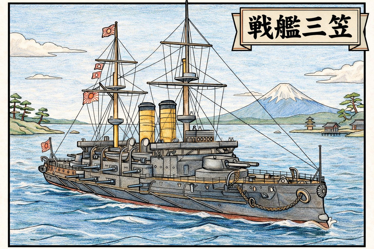 そんな現場の悩みを解決したくて、昔の少年たちの憧れ「戦艦三笠」の本格的なぬり絵を作成しました。