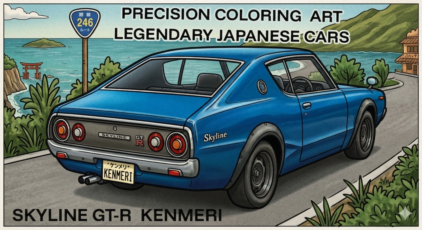 そんな現場の悩みを解決したくて、昭和の伝説の名車、日産スカイライン2000GT(通称:ケンメリ)の本格的なぬり絵を作成しました(当時多くの男性が憧れた人気車種です)。