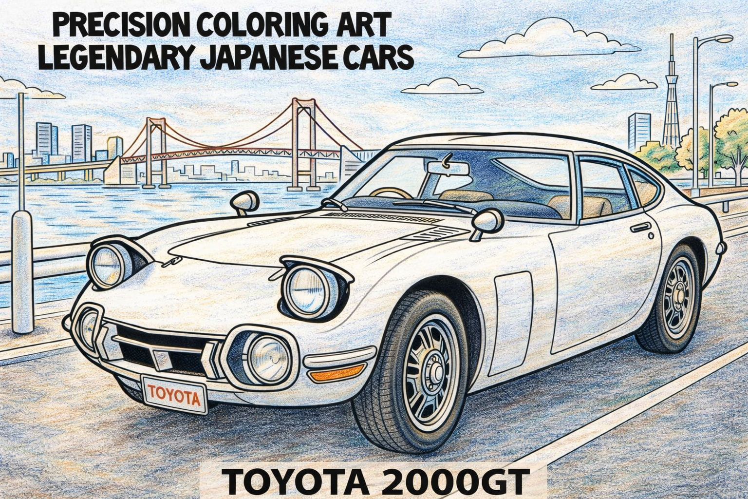 そんな現場の悩みを解決したくて、「世界が認めた、日本のスポーツカー」、トヨタ2000GTの本格的なぬり絵を作成しました(当時多くの男性が憧れた人気車種です)。