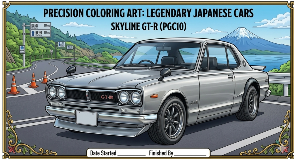 そんな現場の悩みを解決したくて、昭和の伝説の名車、スカイライン(通称:ハコスカ)の本格的なぬり絵を作成しました(当時多くの男性が憧れた人気車種です)。