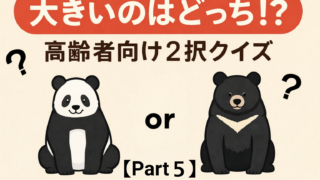 高齢者向けの二択クイズ「大きいのはどっち?」Part5。簡単で耳の遠い方や目の不自由な方も参加OK!豆知識や問いかけで会話も弾み、デイサービスやグループ活動で楽しく盛り上がります。