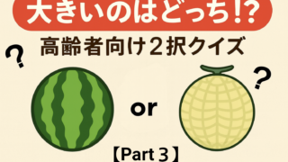高齢者向けの二択クイズ「大きいのはどっち?」Part2。簡単で耳の遠い方や目の不自由な方も参加OK!豆知識や問いかけで会話も弾み、デイサービスやグループ活動で楽しく盛り上がります。