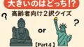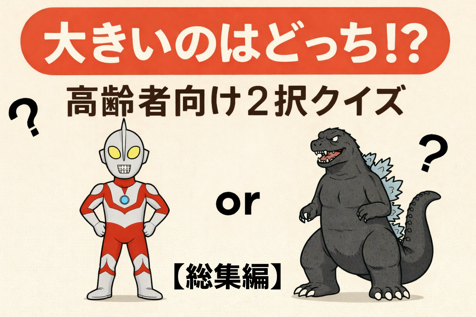 ※この記事は「大きいのはどっち⁉️」シリーズの中から、実際に現場で反応の良かった問題を10問厳選した【実践用総集編】です。遊び方やこのクイズの考え方については、▶ どっち⁉️シリーズ まとめ記事 で詳しく解説しています。