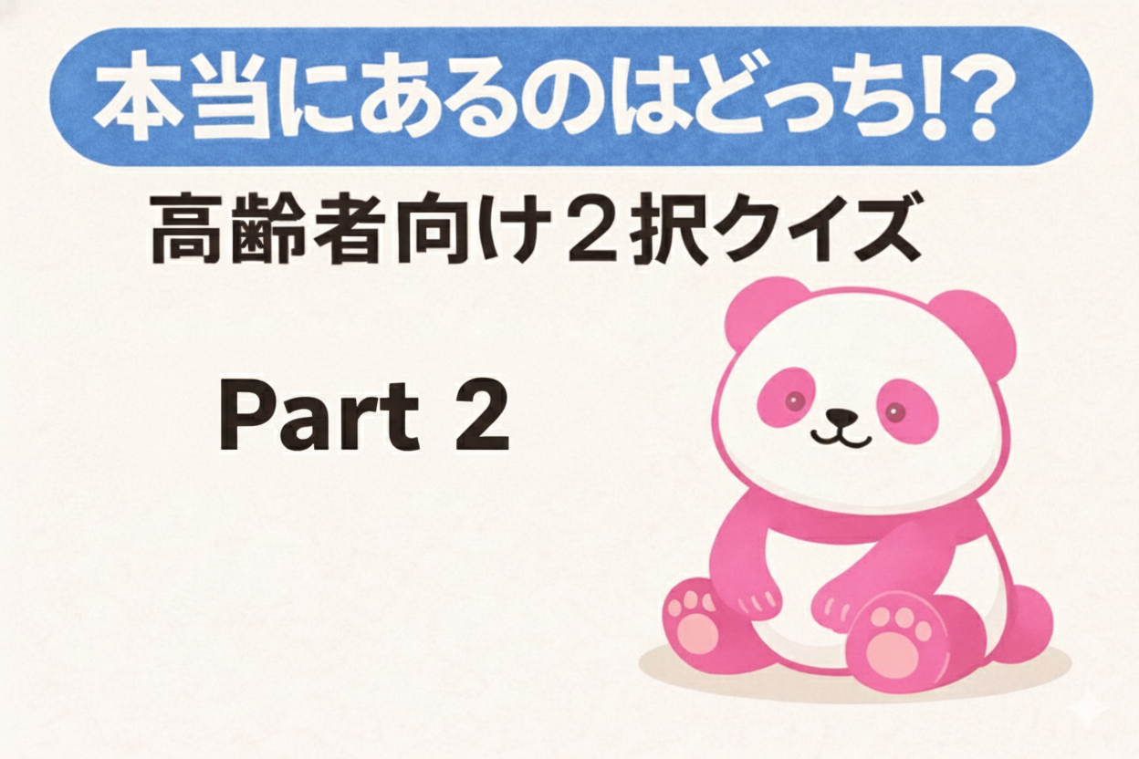 「本当にあるのはどっち⁉️」は、2択で答えるだけのシンプルなクイズですが、声かけや豆知識を加えることで10問で約30分楽しめるレクリエーションになります。