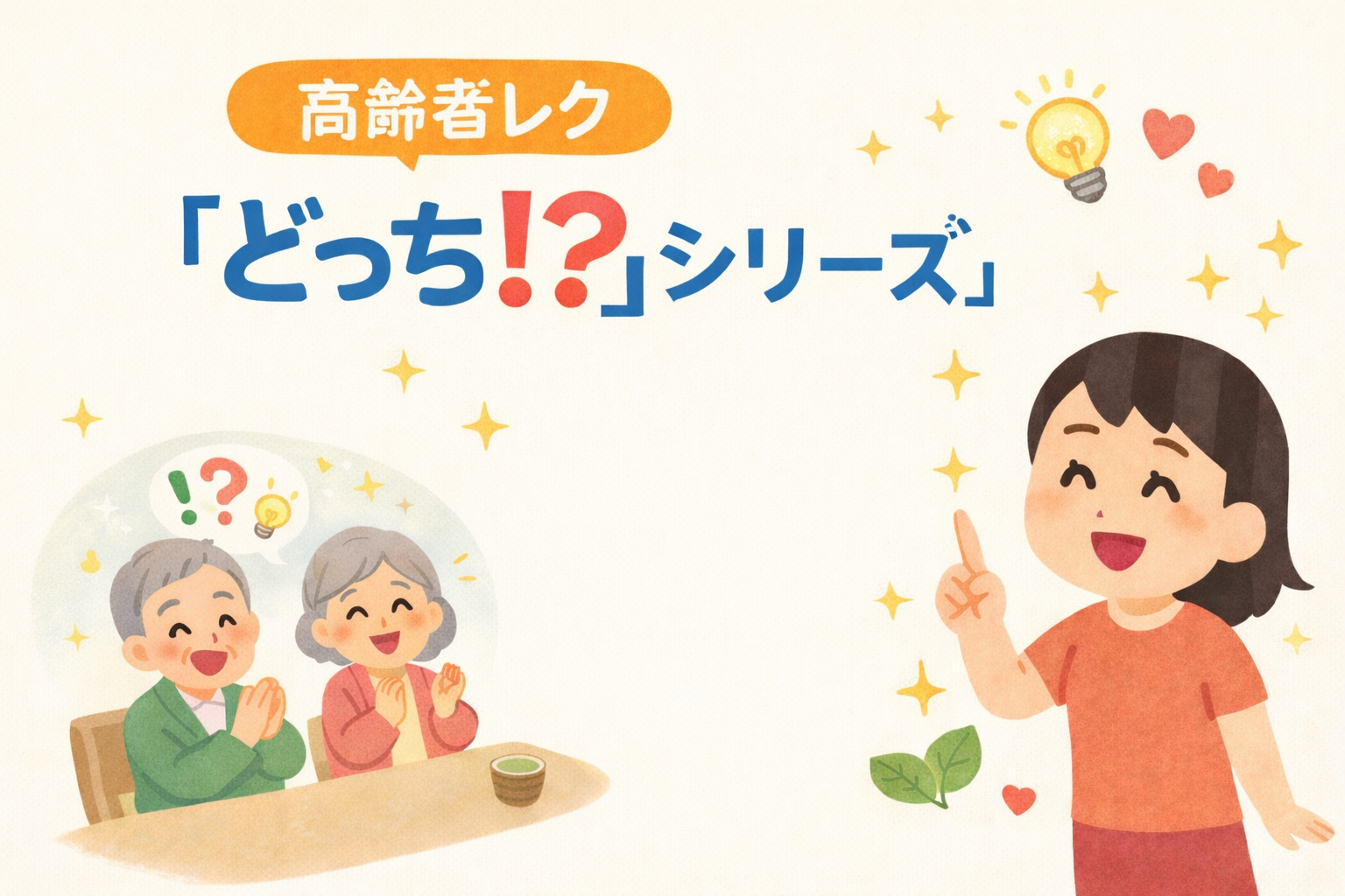 ここでは、高齢者レクリエーションとして大人気の「大きいのはどっち⁉️」「本当にあるのはどっち⁉️」「正しいのはどっち⁉️」、通称「どっち⁉️シリーズ」2択クイズ の魅力や特徴、実際の遊び方をわかりやすく紹介します。